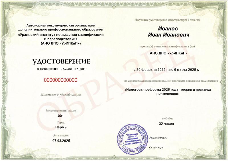 Обзор программы повышения квалификации «Налоговая реформа 2026 года: теория и практика применения»